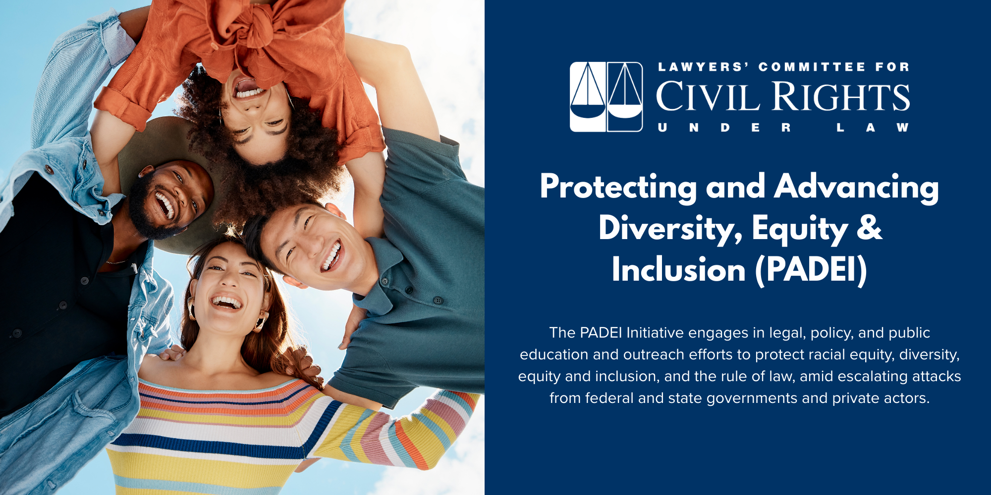 Through the Protecting and Advancing Diversity, Equity and Inclusion (PADEI) Initiative, the Lawyers’ Committee for Civil Rights Under Law is engaged in legal, policy, and public education and outreach efforts to protect racial equity, diversity, equity and inclusion, and the rule of law, amid escalating attacks from federal and state governments and private actors. Our efforts aim to shape legal standards and policy frameworks that uphold racial equity as a core democratic and civil rights principle, while addressing the growing wave of misinformation and attacks on equity initiatives.
